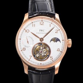 홍콩명품 [아이떠블유씨] 남성용 포르투기저 문페이즈 투어빌론 18K 로즈골드 42.4mm 가죽줄 화이트 다이얼 iwc71023 > I.W.C 홍콩명품