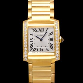 Cartier Men's Tank "Française Watch!!" Diamond Medium Model Yellow Gold Quartz Movement White Dial