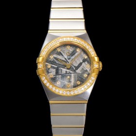 Omega Ladies Constellation Yellow gold diamond set bezel 28mm quartz movement meteorite dial