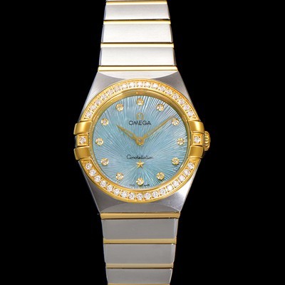 홍콩명품 [오메가] 여성용 컨스틀레이션 131.25.28.60.60.001 옐로우골드 다이아몬드 세팅 베젤 28mm 쿼츠 무브먼트 그린 다이얼 omg0149 > 오메가 홍콩명품