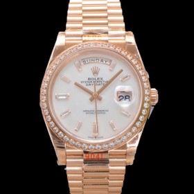• 홍콩명품 [로렉스] 남성용 New 데이데이트 m228345rbr-0026 무게187g 프레지던트 18K 로즈골드 40mm 오토매틱 Cal.2836-2 타입 다이아몬드/마더 오브펄 다이얼 rol5402