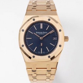 홍콩명품 [오데마피게] 남성용 하이엔드 로얄오크 15202OR.OO.1240OR.01 엑스트라 씬 18K 로즈골드 39mm 오토매틱 Cal.2121타입 블루 다이얼 aud6570