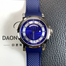 • 홍콩명품 [브레게] 남성용 마린 컬렉션 5817ST/Y2/SV0 빅데이트 독특한 "문" 팁 핸즈 네이비 물결무늬 다이얼 Cal.517GG HG 오토매틱 무브먼트 brg03021