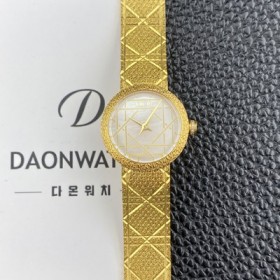 홍콩명품 [디올] 여성용 라디드 사틴 25mm 18K 옐루골드 쿼츠 무브먼트 화이트 자게 다이얼 dio1002