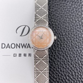 • 홍콩명품 [디올] 여성용 라디드 사틴 25mm 다이아몬드 쿼츠 무브먼트 핑크 자게 다이얼 dio1009
