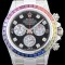 홍콩명품 [로렉스] 남성용 904L스틸 업!! 데이토나 116599 레인보우 무지개 컬러 바게크 컷 사파이어 36개 세팅 베젤 블랙 다이얼 오이스터 브레이슬릿 7750B-2 오토매틱 무브먼트 ROL0050